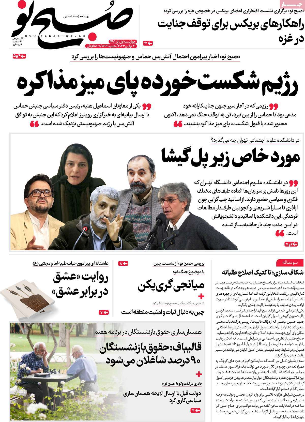 صفحه اول روزنامه ایران پنجشنبه ۲۹ آبان