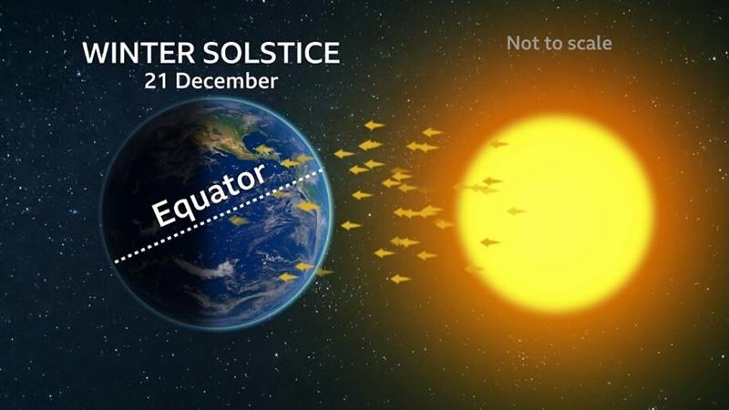 در مقابل، نیمکره شمالی کمترین میزان نور خورشید را دریافت میکند و بیشترین تاریکی سال را دارد.