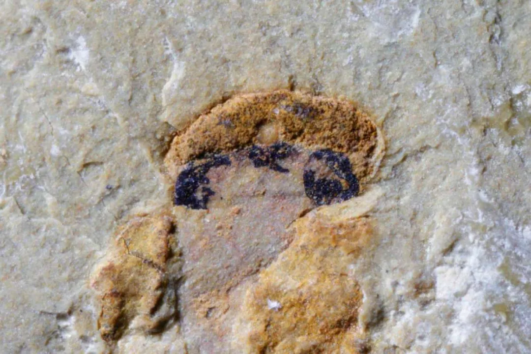 تصویر فسیلی از هایکوایکتیس که در آن ملانوزومها بهخوبی حفظ و ماندگار شدهاند؛ هایکوایکتیس ماهی کوچکی متعلق به دوره زمینشناسی کامبرین است که علاوهبر چشمان اصلی جفت دوم کوچکی از اندامهای بینایی نیز داشته است.
