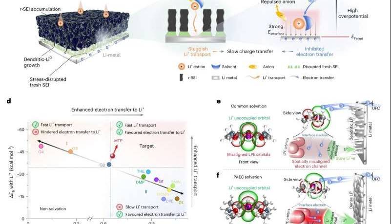 دایگن روان (Digen Ruan)، شونچیانگ چن (Shunqiang Chen) و همکارانشان در مقالهای که در مجله معتبر نِیچِر انرجی/ Nature Energy منتشر شده، راهحلی تازه ارائه دادهاند. آنها با مهندسی مولکولی، ساختار حلالهای الکترولیت را بهگونهای تغییر دادند که الکترونها در یک کانال مسطح و منظم (PAEC) آرایش پیدا کنند.