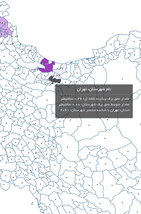پیشبینیها از بارش متوسط ۰.۲۶ سانتیمتر در استان تهران خبر میدهند.بارش برف هماکنون در ارتفاعات تهران آغاز شده است.طبق این پیشبینی در ارتفاعات طالقان بارش برف به ۲.۵ سانتی متر به صورت متوسط خواهد رسید.انتظار میرود با این بارندگیها از حجم آلودگی کاسته شود.