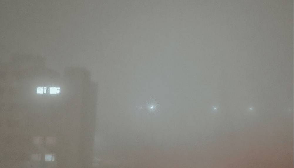 همزمانی آلودگی و مه بسیار غلیظ موجب شکلگیری مه دود و کاهش بسیار شدید دید افقی شده است.