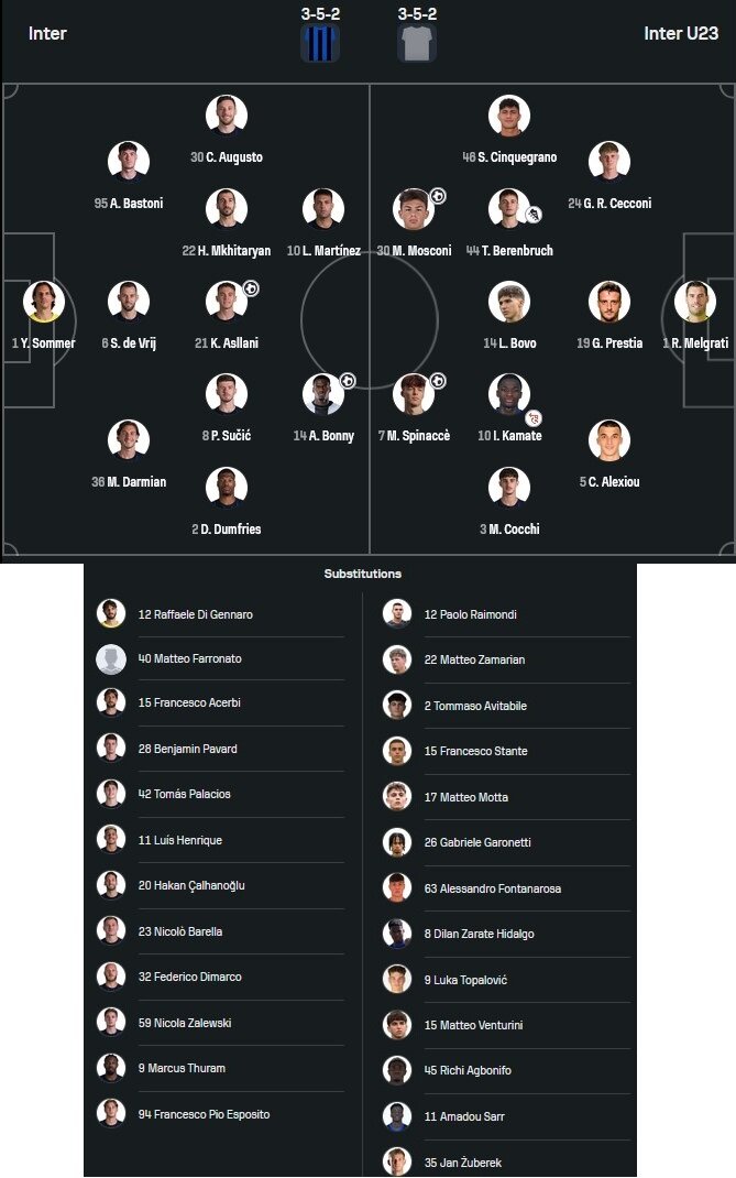 تیم فوتبال اینتر چند روزی است تمرینات آمادهسازی خود را برای حضور در فصل جدید سری آ ایتالیا زیر نظر کریستین چیوو آغاز کرده است. شاگردان این مربی امروز (یکشنبه ۱۱ مرداد) در دیداری دوستانه به مصاف تیم زیر ۲۳ سال اینتر رفتند.