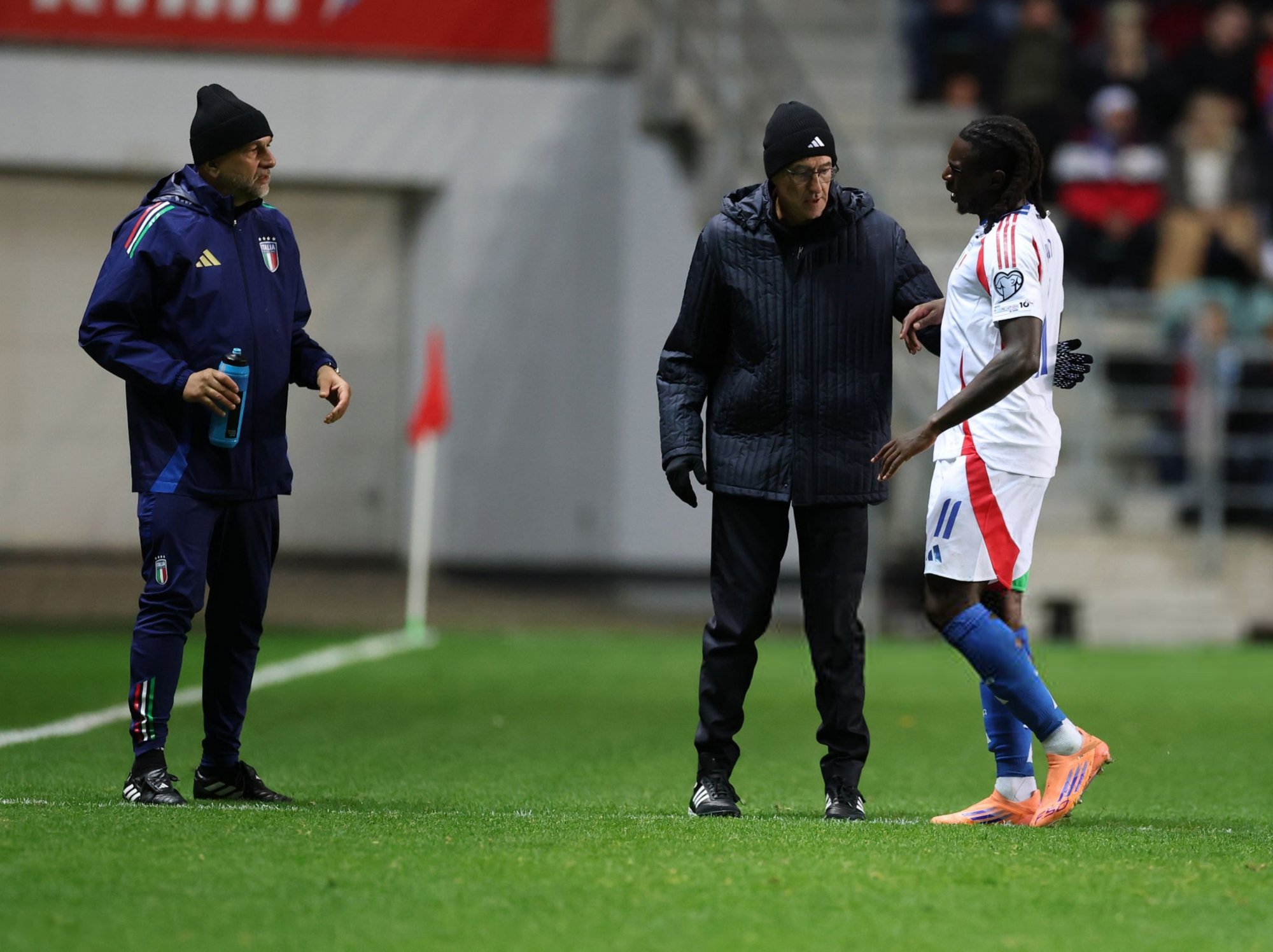 مویزه کین، مهاجم تیم ملی ایتالیا، شبی پر از احساسات متضاد را تجربه کرد؛ او در دیدار برابر استونی گل نخست را برای آتزوری به ثمر رساند، اما تنها چند دقیقه بعد به دلیل مصدومیت از ناحیه مچ پا زمین بازی را ترک کرد.