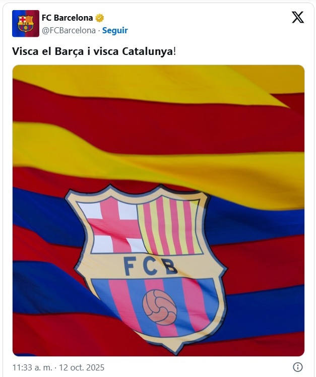 باشگاه بارسلونا امروز 12 کتبر، در روز ملی اسپانیا، پیامی را در شبکههای اجتماعی خود منتشر کرد که در آن نوشته شده: «زنده باد بارسا و زنده باد کاتالونیا» همراه با پرچم کاتالونیا و پرچم این تیم کاتالان.