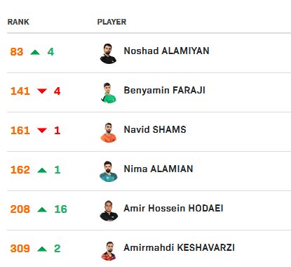 صعود نوشاد و سقوط بنیامین در رنکینگ جدید جهان