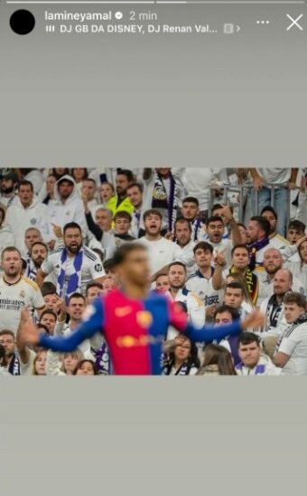 زمانی که کاروان بارسلونا حوالی ساعت ۲۳ به مادرید رسید، لامین استوری دیگری گذاشت با جملهای در پسزمینه که میگفت: