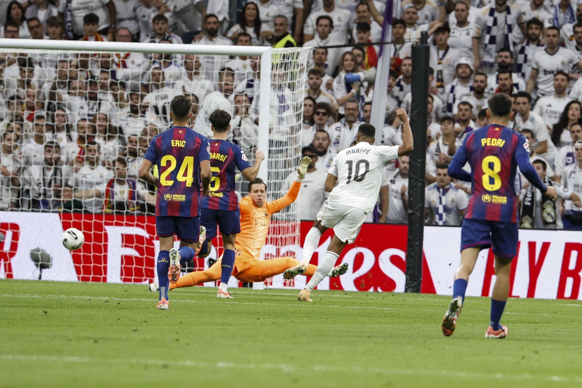 همه چیز از دقیقه ۱:۵۰ به هم ریخت، زمانی که سوتو گرادو یک ضربه پنالتی را به دلیل خطای یامال روی وینیسیوس اعلام کرد. کمک داور ویدیویی ناچار شد او را فرا بخواند و پس از بررسی چند تصویر، مشخص شد این بازیکن برزیلی بود که پای یامال را زده بود و در نتیجه، تصمیم داور لغو شد. دقایقی بعد نیز کمک داور ویدیویی بار دیگر مداخله کرد و گل امباپه را به دلیل آفساید مردود اعلام کرد. با این حال، رئالیها که در حملات خطرناکتر بودند، به گل اول رسیدند.