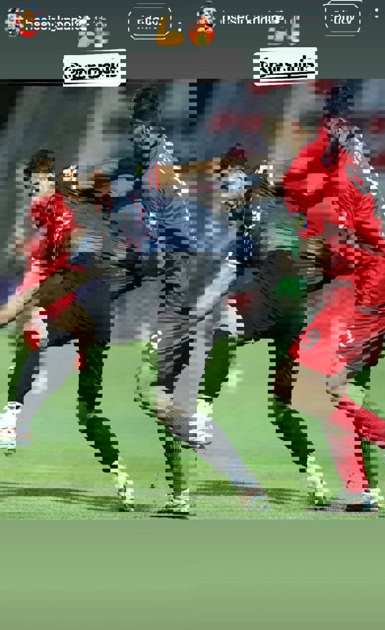 او تصویری از بازی را بازنشر کرده که در آن با مهدی ترابی بازیکن تراکتور بر سر تصاحب توپ چلنج دارد. البته رقابت این دو بازیکن به شکلی است که کنعانی صاحب توپ است و ترابی با کشیدن پیراهن او میخواهد متوقفش کند. مدافع پرسپولیس با تگ کردن نام این تیم و ایموجیهایی که نشان از قدرت دارد، سعی کرده برتری تیمش را به رخ بکشد.
