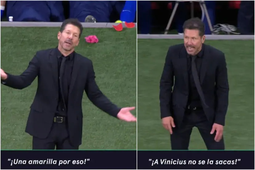 پس از یکی از این صحنهها، طبق زیرنویسهای مووی استار، سیمئونه در اعتراض به خیل مانزانو گفت: «هی، برای چی سوت میزنی! هی، آروم! آروم! برای این کارت زرد!» سرمربی اتلتیکو اینطور شروع کرد. او در پایان با تکان دادن سرش گفت: «تو که قرار نیست به وینیسیوس کارت زرد بدهی!» عبارتی که او با نگاه به داور چهارم نیز تکرار کرد: «تو که قرار نیست به وینیسیوس کارت زرد بدهی!»