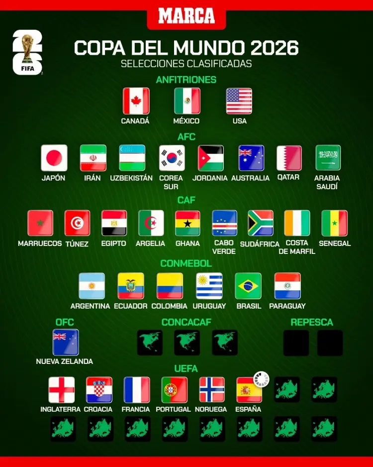 در نهایت، نیوزیلند صعود خود را به عنوان نماینده اقیانوسیه قطعی کرده است. طبیعتاً به این تیمها باید سه میزبان یعنی ایالات متحده، مکزیک و کانادا را نیز اضافه کرد. ۳۲ تیم صعودکننده که قدرتهای بزرگ اروپایی مانند اسپانیا نیز میتوانند در این وقفه ملی به آنها بپیوندند. جام جهانی در حال شکلگیری است. تمام تیمهای صعودکرده را در اینجا مشاهده کنید.