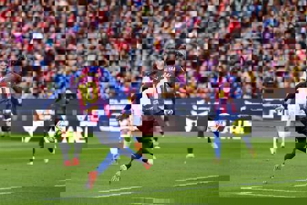 این توپ ابتدا در دهانه دروازه به دنی اولمو رسید اما او نتوانست ضربه نهایی را بزند. سپس شماره ۱۰ بارسا از عقب وارد شد و با ضربهای محکم و بلند با روی پای چپ، کار را برابر کرد.