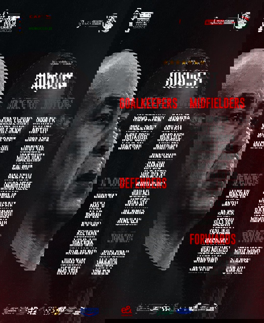 فهرست نهایی مصر شامل ۲۶ بازیکن روز ۱۱ دسامبر به کنفدراسیون ارسال خواهد شد و تیم دو بازیکن اضافی نیز همراه خود به مراکش میبرد (در مجموع ۲۸ نفر) تا در شرایط اضطراری برای جایگزینی آماده باشند.