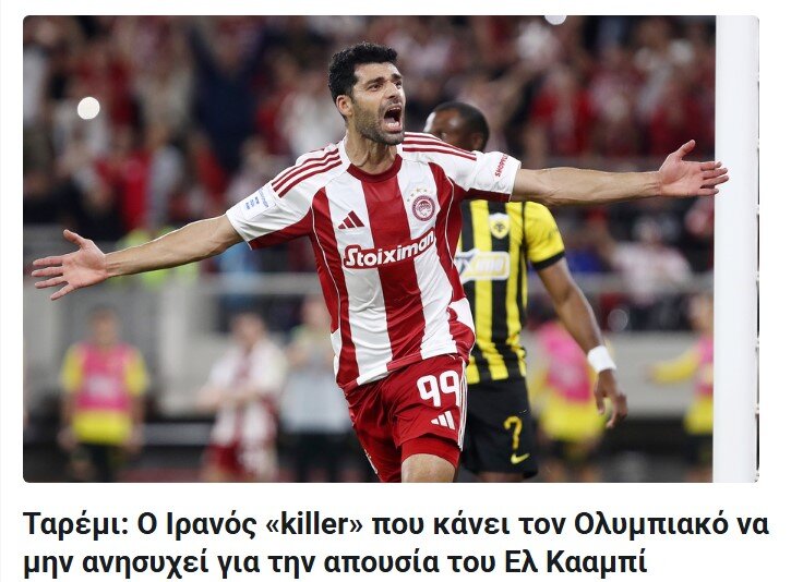مهر/یک رسانه یونانی در گزارشی به عملکرد مهدی طارمی در تیم فوتبال المپیاکوس پرداخت و او را به مانند یک قاتل بی رحم توصیف کرد.