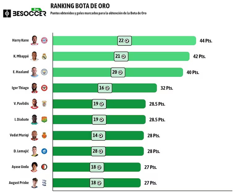 در مسیر کسب جایزه پیچیچی (آقای گلی لالیگا)، امباپه با فاصلهای هفتگله نسبت به موریقی و 9 گل نسبت به فران تورس، پیشتاز مطلق است. هدف بزرگتر او دفاع از عنوان کفش طلای اروپاست که فصل گذشته با پشت سر گذاشتن صلاح و گیوکرش به دست آورد. او اکنون با هری کین (۲۲ گل) و ارلینگ هالند (۲۰ گل) رقابتی شانه به شانه دارد.