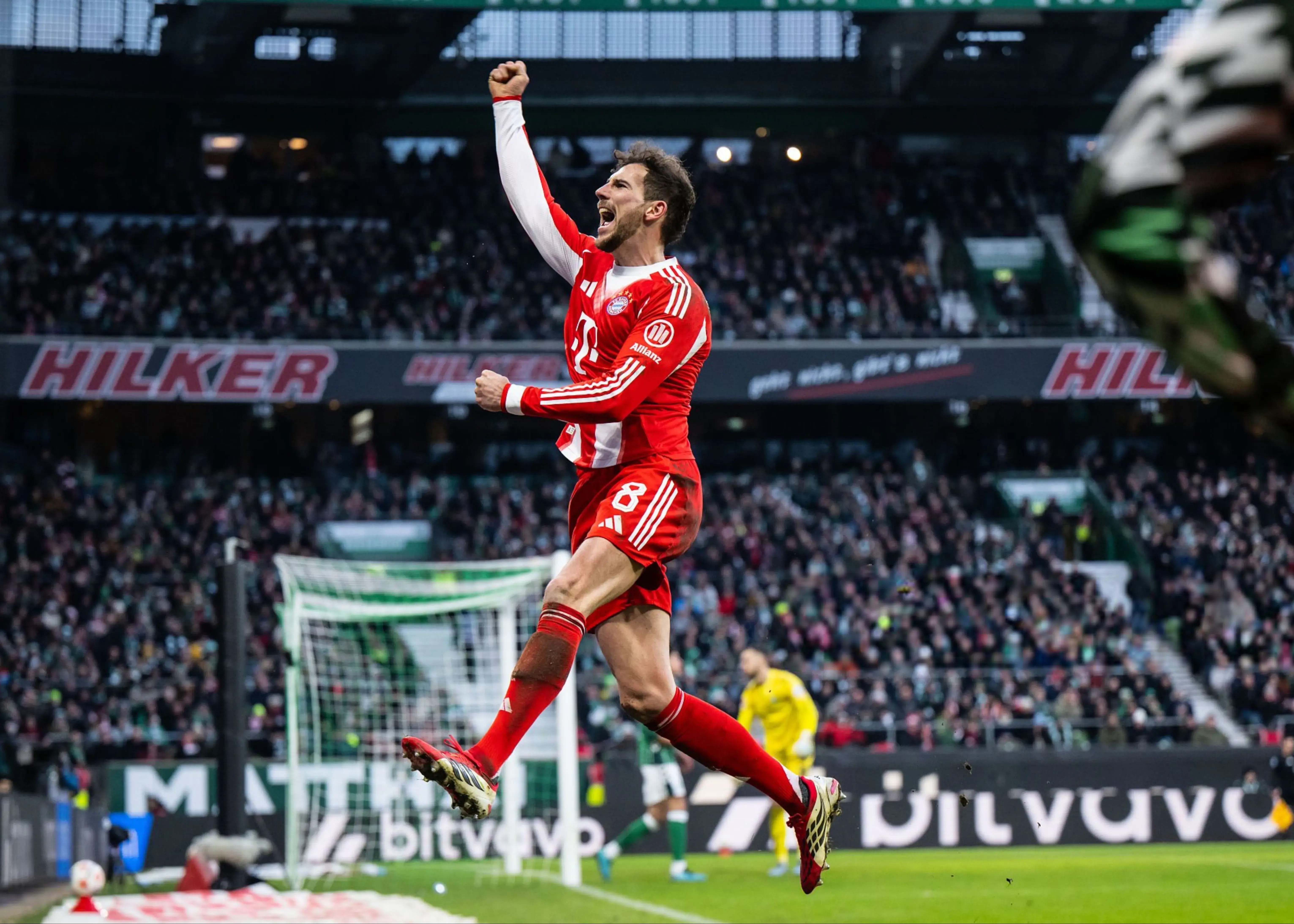 ‏هنوز عرق بازیکنان برمن خشک نشده بود که سه دقیقه بعد، کین دوباره زهردار ظاهر شد. لوئیس دیاز با یک چرخش عالی توپ را به کین رساند و مهاجم انگلیسی که گویی در زمین تمرین قدم می‌زد، از فاصله دور با یک بغل‌پای مینیاتوری و استثنایی، کنج پایین دروازه را لرزاند. گلی که امضای شخصی هری کین بود و او را به آمار خیره‌کننده ۲7 گل در ۲۲ مسابقه رساند.