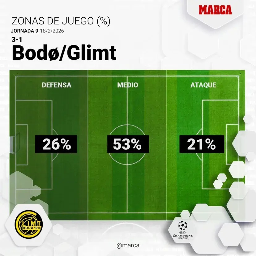 دستاورد این تیم نروژی زمانی شگفتانگیزتر است که بدانیم آنها از ۳۰ نوامبر در لیگ داخلیشان بازی نکردهاند (۸۱ روز گذشته است). علاوه بر این، در روز پنجم مرحله گروهی لیگ قهرمانان، آمارها احتمال حذف آنها را ۹۹.۷ درصد پیشبینی کرده بود! در همین حال، ورزشگاه خانگی این تیم یک قلعه واقعی است. از آخرین ۴۴ بازی اروپایی که بودو گلیمت در خانه انجام داده، آنها ۳۳ پیروزی، دو تساوی و ۹ شکست داشتهاند.