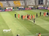 بازيکنان تيم استقلال در ساعت 14.25 براي گرم کردن وارد زمين شدند و 5 دقيقه پس از آن بازيکنان سپاهان وارد ورزشگاه شدند.