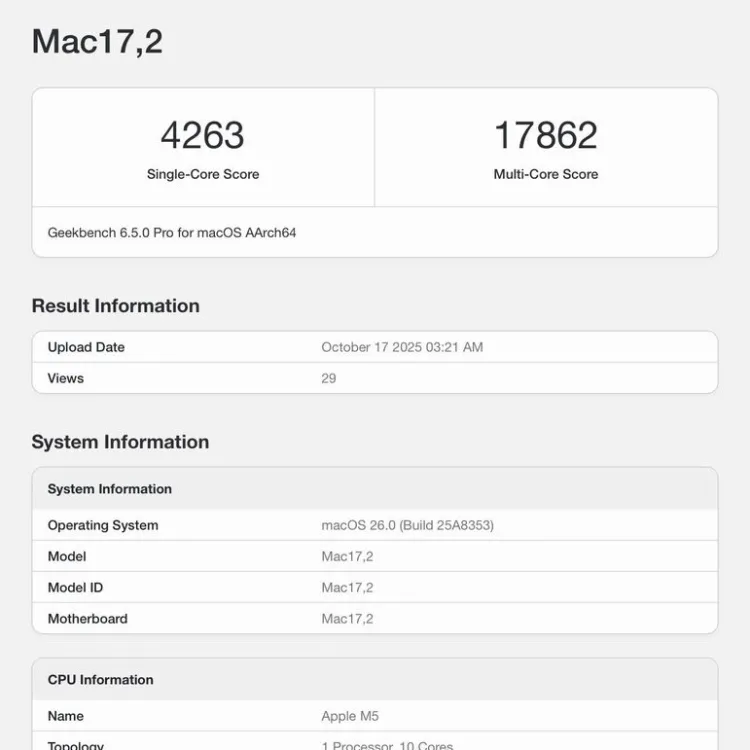 بنچمارک تراشه M5 با جهش گرافیکی چشمگیر لو رفت