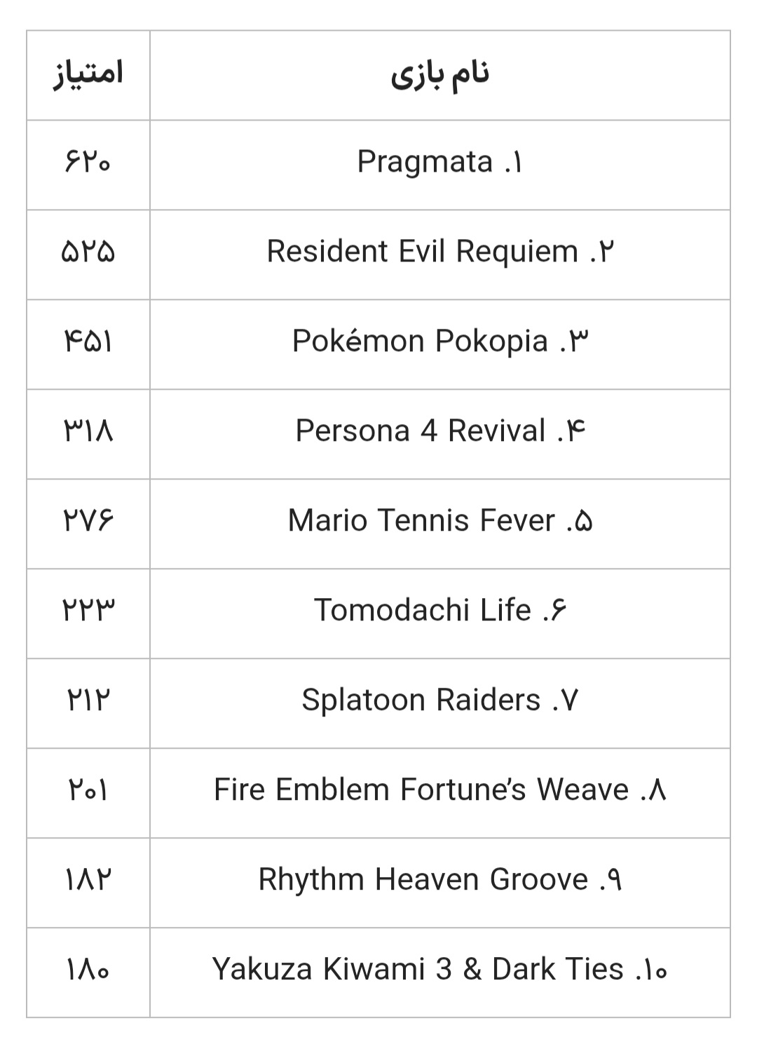 گیم فا/طبق آخرین رتبهبندی پرطرفدارترین بازیها در میان مخاطبان مجله فامیتسو، عنوان Pragmata با عبور از Resident Evil Requiem، به صدر این ردهبندی در ژاپن دست پیدا کرده است.