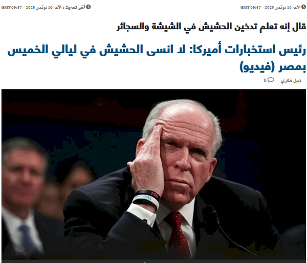 رئیس سابق سازمان اطلاعاتی آمریکا (سیا)، «جان برنان» پس از اظهار نظر درباره استعمال حشیش در دوران حضورش در مصر، باعث جنجال گستردهای در میان کاربران شبکههای اجتماعی شده است. برنان در مصاحبهای با روزنامه کویتی «القبس» گفت که خاطرات قدم زدن در خیابانهای «خانه الخلیلی»، بازار طلا و مرکز قاهره برای او زنده شده است و اینکه در آن بازه زمانی، در این مناطق، حشیش مصرف میکرده است.