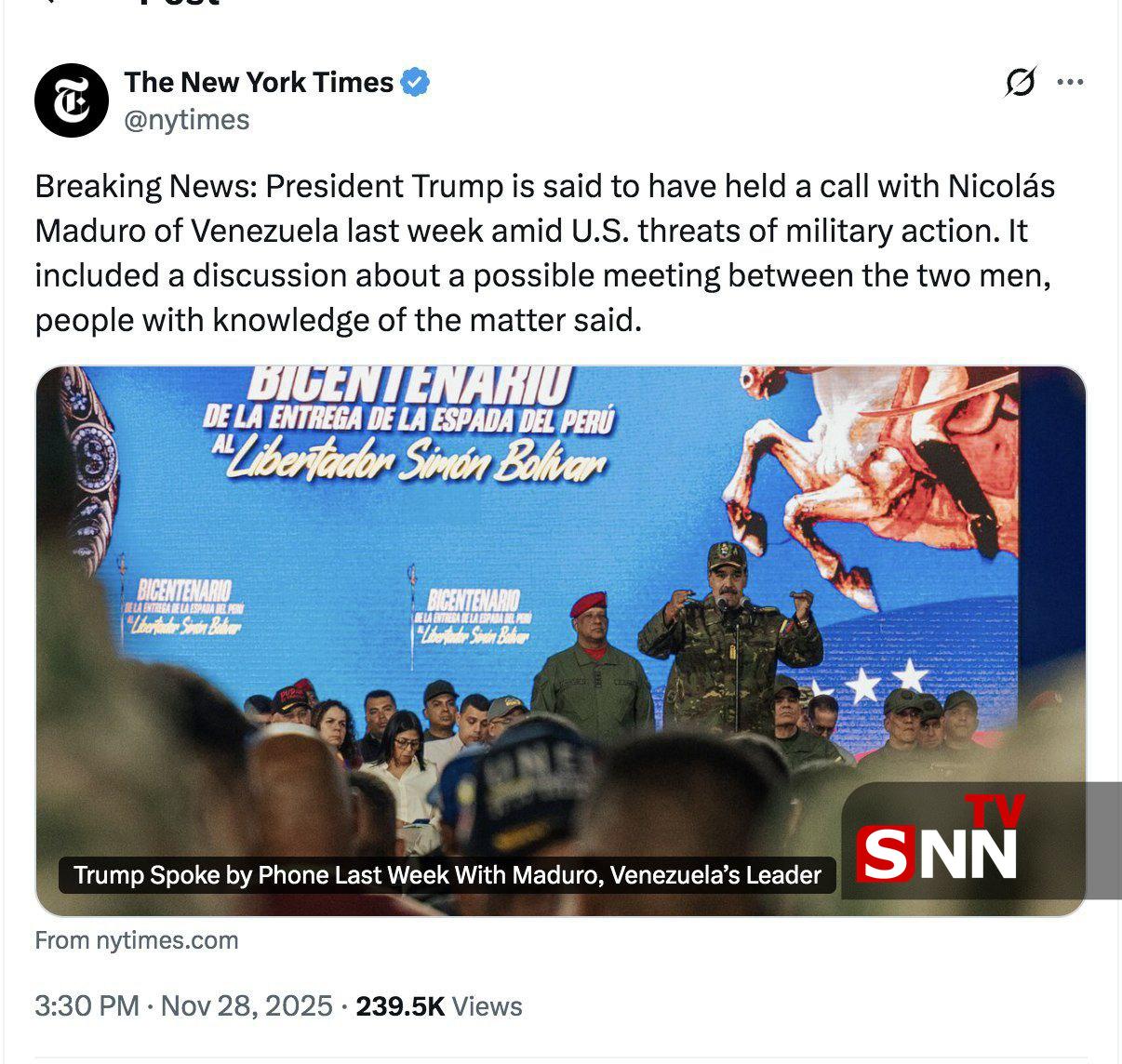 این تماس در حالی انجام شده که ایالات متحده همچنان ونزوئلا را به اقدام نظامی تهدید میکند.