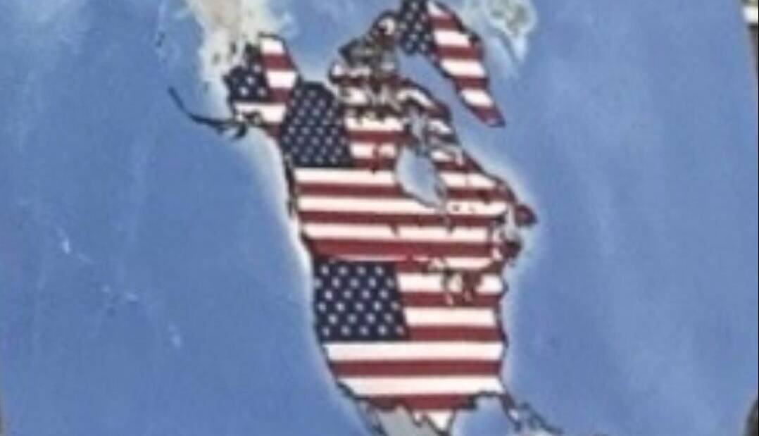 در این نقشه، محدوده جغرافیایی ایالات متحده با طرح پرچم آمریکا مشخص شده و همین نقش به شکل معناداری بر بخش‌هایی از آمریکای شمالی و جنوبی از جمله کانادا، گرینلند و ونزوئلا نیز تسری یافته است.
