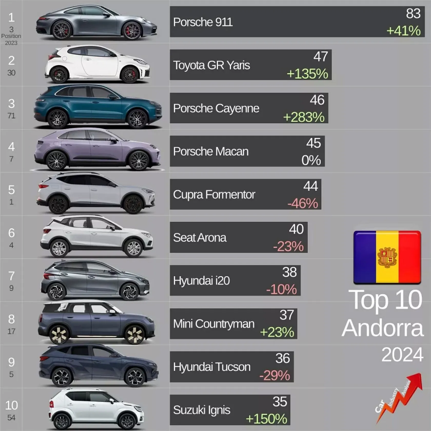 سلیقه خریداران خودرو در سراسر جهان همیشه پر از شگفتی است. درحالیکه معمولاً نگاهها به پرفروشترینهای بازار آمریکا و اروپا یا مدلهای برتر جهانی دوخته میشود، آمارهای فروش سال ۲۰۲۴ در هر کشور داستان منحصربهفردی را روایت میکند؛ داستانی که در آن یک پورشه ۹۱۱ اسپرت میتواند پرفروشترین خودروی یک کشور باشد! این آمارها از قهرمانان فروش در دهها کشور جهان برمیدارد. بزرگترین شگفتی این فهرست به نام کشور آندورا ثبت شده است؛ کشوری کوچک در کوههای پیرنه بین فرانسه و اسپانیا که در آن، پورشه ۹۱۱ پرفروشترین خودروی سال گذشته بوده است! در این کشور کوچک با جمعیت تقریبی ۸۲ هزار نفر، پورشه موفق به فروش ۸۳ دستگاه از مدل ۹۱۱ شده است که این انتخاب بهوضوح نشاندهنده ثروت قابلتوجه ساکنان آندورا است. جالبتر آنکه رتبه دوم پرفروشترین خودروهای این کشور به تویوتا GR یاریس اختصاص دارد و مدلهای پورشه کاین و ماکان نیز رتبههای سوم و چهارم را به خود اختصاص دادهاند.