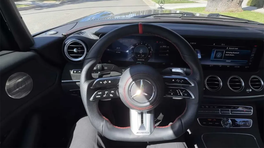 در داخل کابین، تضاد کلاسیک و مدرن به شکلی استادانه و تعمدی به نمایش گذاشته شده است. درحالیکه اصالت بنز ۶۰۰ حس میشود، نمایشگر یکپارچهٔ سیستم اطلاعات و سرگرمی MBUX، فرمان D شکل با پوشش چرم ناپا و نشانگر قرمز ساعت ۱۲ و صندلیهای اسپرت چرم و آلکانترا با دوخت قرمز، فریاد میزنند که اینجا با یک AMG مدرن طرف هستید، نه یک لیموزین کلاسیک.