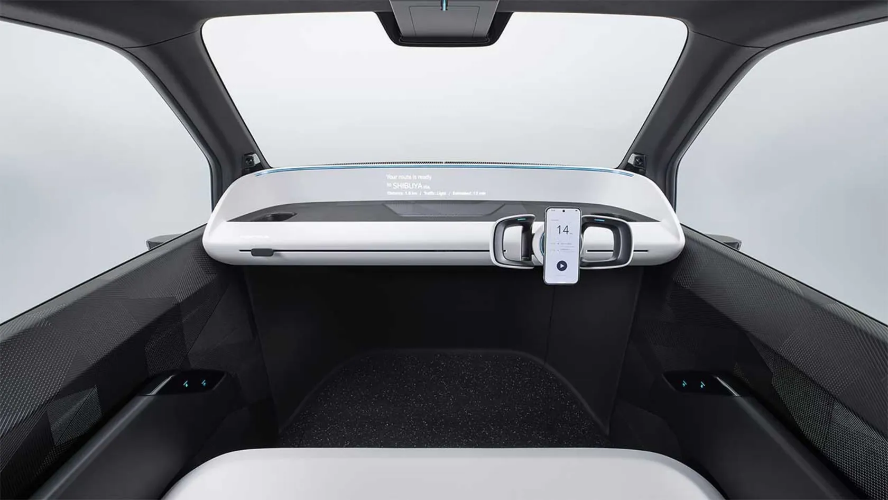 این خودروی کوچک و بامزه دارای یک صندلی نیمکتی یکپارچه است که پشتی آن بخشی از ساختار بدنه محسوب میشود تا از حداکثر فضای داخلی استفاده شود. به گفتهٔ شونتارو ساتو، طراح این پروژه، یکی از ویژگیهای جالب طراحی، فضای تعبیه شده در زیر صندلی برای قرار دادن یک اسکیتبورد یا وسایل حملونقل شخصی مشابه است. کابین با فرمان یوغ که یک گوشی هوشمند روی آن نصب میشود و یک نمایشگر سراسری، طراحی ساده و مقرونبهصرفهای دارد.