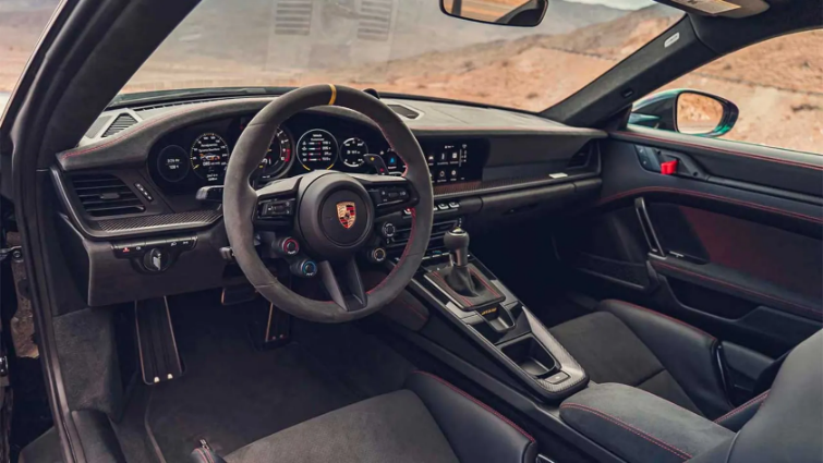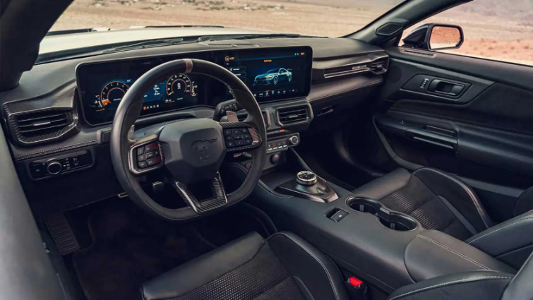 بهتر است زمانی که موستانگ GTD متوقف است، از پنجرهٔ پلی کربنات، سیستم تعلیق پوشراد عقب را تماشا کنید زیرا وقتی نگاهتان به جلو باشد، کابین این فورد ۳۷۰ هزار دلاری تقریباً با موستانگ اکوبوست که کمتر از یک‌دهم قیمت دارد، یکسان است. هرچند تریم فیبر کربن روی داشبورد دارد و با ۱۰ هزار دلار می‌توان پدال‌های تعویض دنده را تیتانیومی کرد اما بقیه چیزها تا ستون B، کاملاً استاندارد موستانگ است که در برابر حتی ۹۱۱ معمولی چندان قابل‌قبول نیست. صندلی‌های ریکارو GTD هم حمایت 911 GT3 RS را ندارند که خودروهایی در این سطح موضوع مهمی است اما در عوض راحتی بسیار بیشتری دارند.