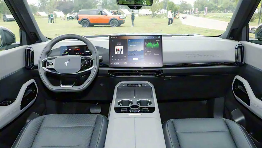 فورد برانکو جدید با حفظ ظاهر جعبهای و سرسخت خود، ویژگیهای مدرنی مانند لوگوی نورانی BRONCO، دستگیرههای درِ مخفی و لاستیک زاپاس روی درِ عقب را به همراه دارد. این خودرو با ۵٬۰۲۵ میلیمتر طول، ۱٬۹۶۰ میلیمتر عرض و ۱٬۸۲۵ میلیمتر ارتفاع است و فاصله محوری ۲٬۹۵۰ میلیمتری، حتی از برانکوی چهاردر بازار آمریکا هم بزرگتر است. بااینحال، برانکوی چینی با زوایای ورود و خروج ۳۰ و ۳۲ درجه و حداقل ارتفاع ۲۲۰ میلیمتری از سطح زمین، تواناییهای آفرود مناسبی خواهد داشت.