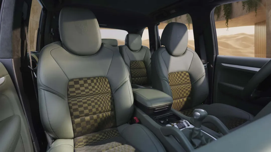 جذابیت این پروژه تنها به ظاهر بیرونی محدود نمیشود. کابین خودرو بهطور کامل با چرم سفارشی سبز انگلیسی بازسازی شده و الگوی کلاسیک و چشمنواز پاشا به رنگ مشکی و زیتونی، از صندلیها تا حتی داخل داشبورد، امتداد یافته است. تزئینات آلومینیومی برسخورده نیز حس لوکس و مدرنی به فضا افزودهاند. نقطه اوج این بازسازی، حفظ و احیای گیربکس شش سرعته دستی آن است؛ ویژگیای که در دنیای شاسیبلندهای مدرن تقریباً منقرض شده است. ترکیب کارکرد پایین، بازسازی توسط خود کارخانه و گیربکس دستی، این GTS را به نمونهای بیهمتا بدل کرده است.