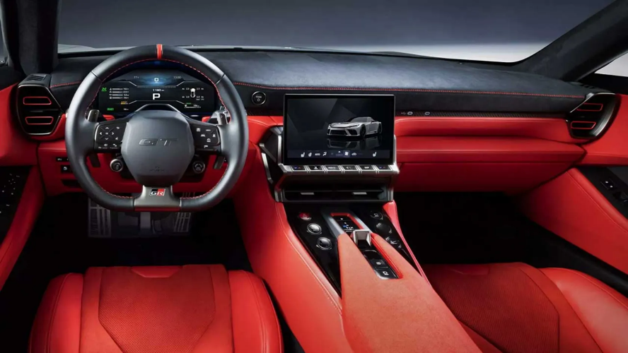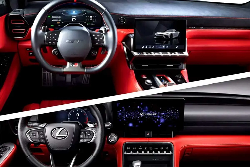 اولین چیزی که جلبتوجه میکند، روکش چرمی صندلیها و بخشهایی از داشبورد است که به رنگ قرمز درخشان لکسوس شباهت انکارناپذیری دارد. البته GR GT شخصیت خاص خود را با جیر روی داشبورد و تزئینات فیبر کربن به نمایش میگذارد اما دریچههای تهویه مطبوع انگار مستقیماً از کابین لکسوس IS برداشته شدهاند. علاوه بر این، کلیدهای پیانویی روی کنسول مرکزی هم شبیه به نمونههای مورداستفاده در لکسوس هستند هرچند در GR GT این شش کلید پهنتر و جعبهایتر از هشت کلید موجود در IS طراحی شدهاند.