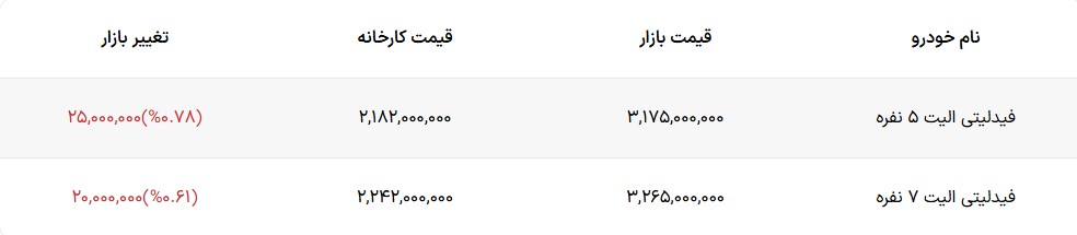 قیمت امروز انواع فیدلیتی در بازار و کارخانه – دوشنبه ۱ دی ۱۴۰۴