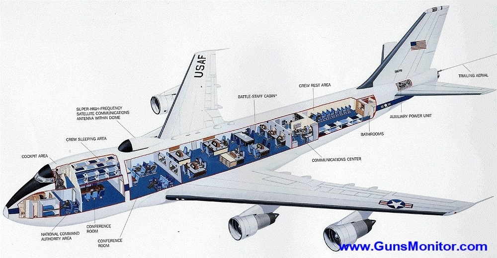 این هواپیما اغلب برای جابجایی وزیر دفاع آمریکا استفاده می شود و توانایی مقاومت در برابر انفجارهای هسته ای و آثار الکترومغناطیسی را دارد. در صورت بروز شرایط اضطراری، این به رهبران آمریکا اجازه می دهد تا دستورات خود را به ارتش انتقال دهند.