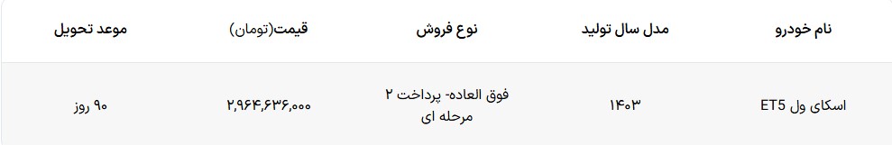 شرایط فروش و قیمت جدید اسکای ول ET5 اعلام شد – دی ۱۴۰۴