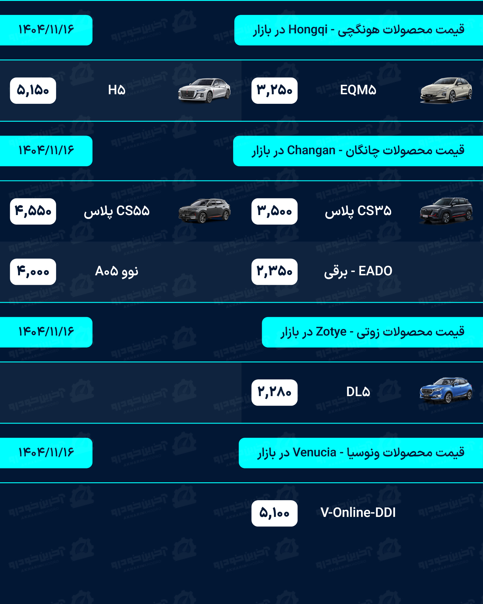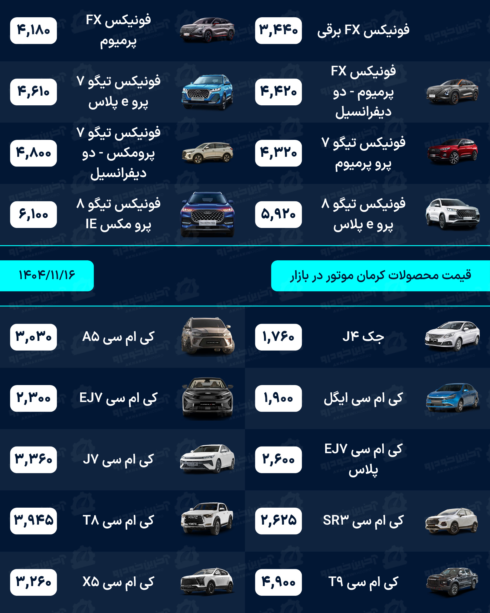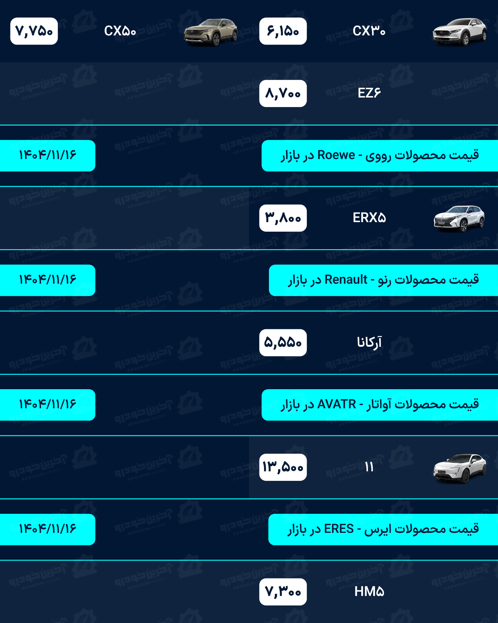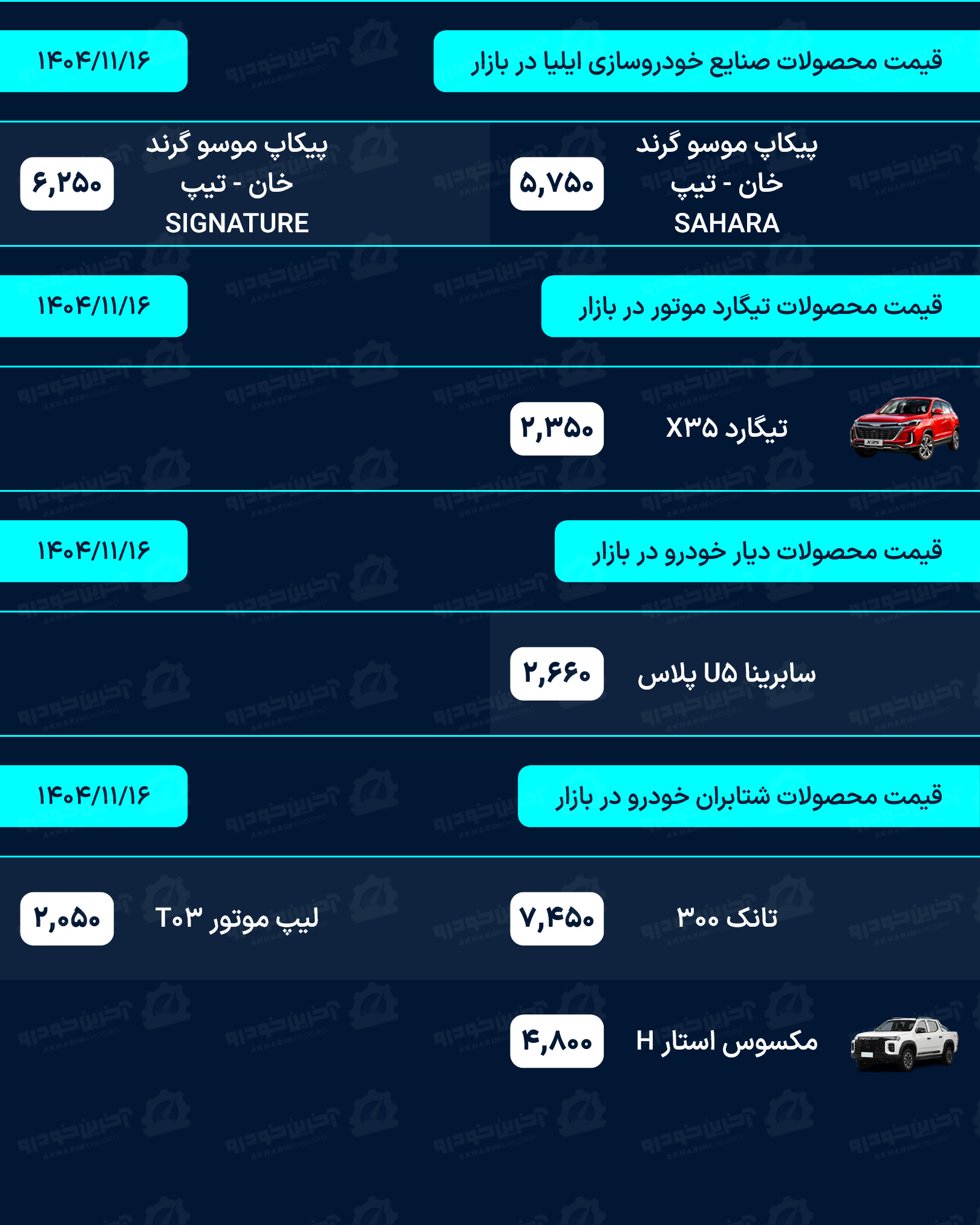 آخرین خودرو/لیستی کامل از قیمت خودروهای صفر کیلومتر داخلی، مونتاژی و وارداتی بازار امروز پنجشنبه مورخ 16 بهمن 1404