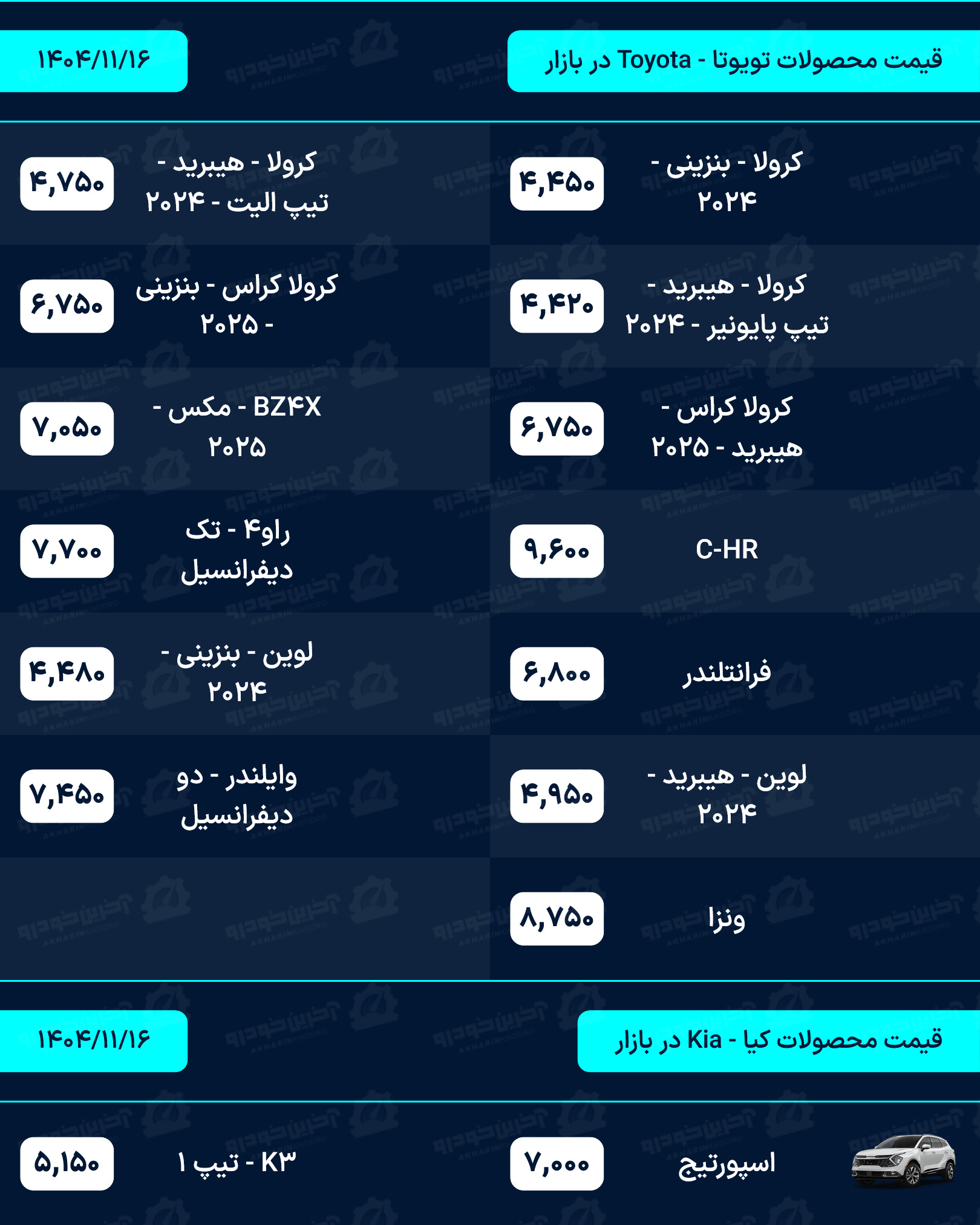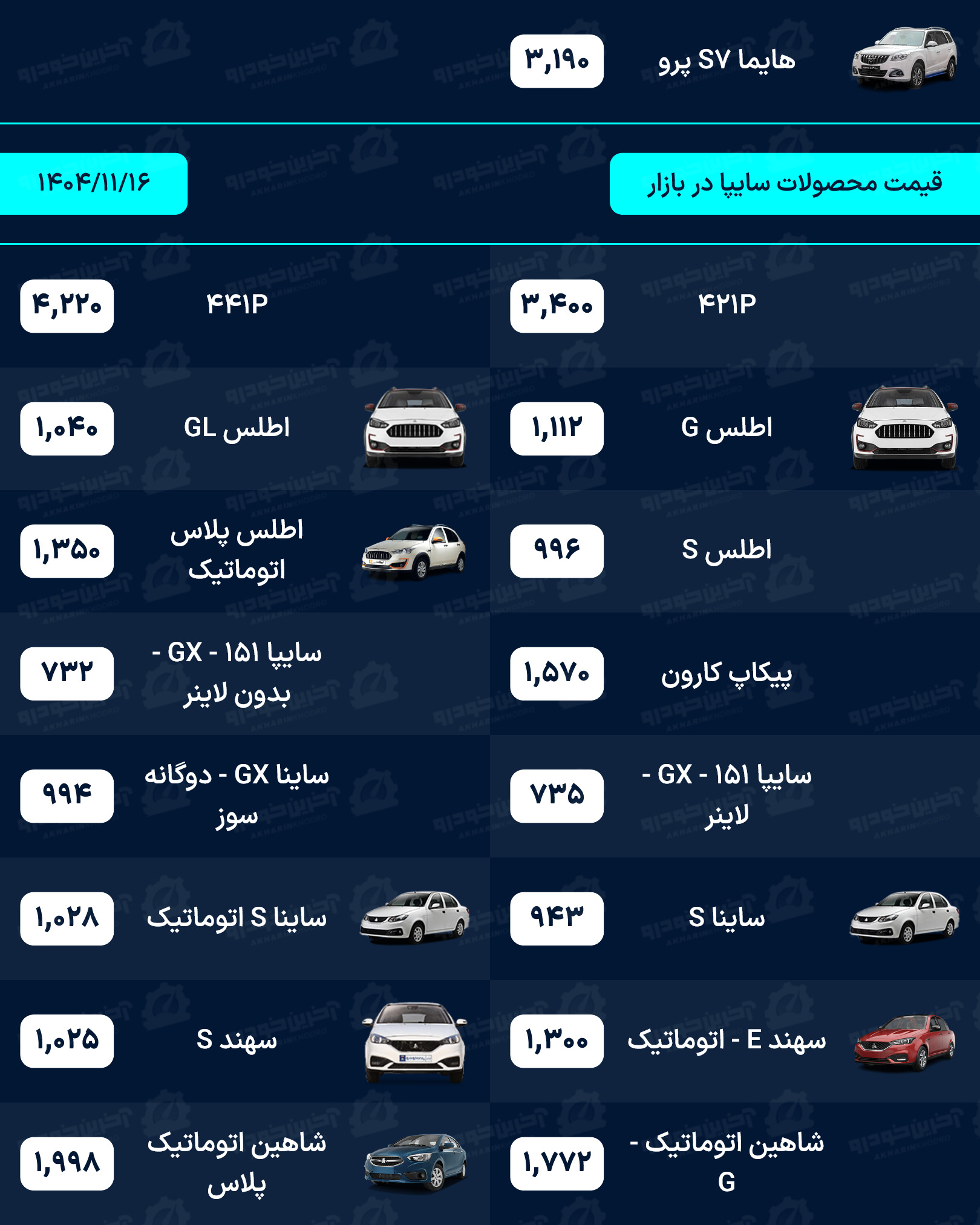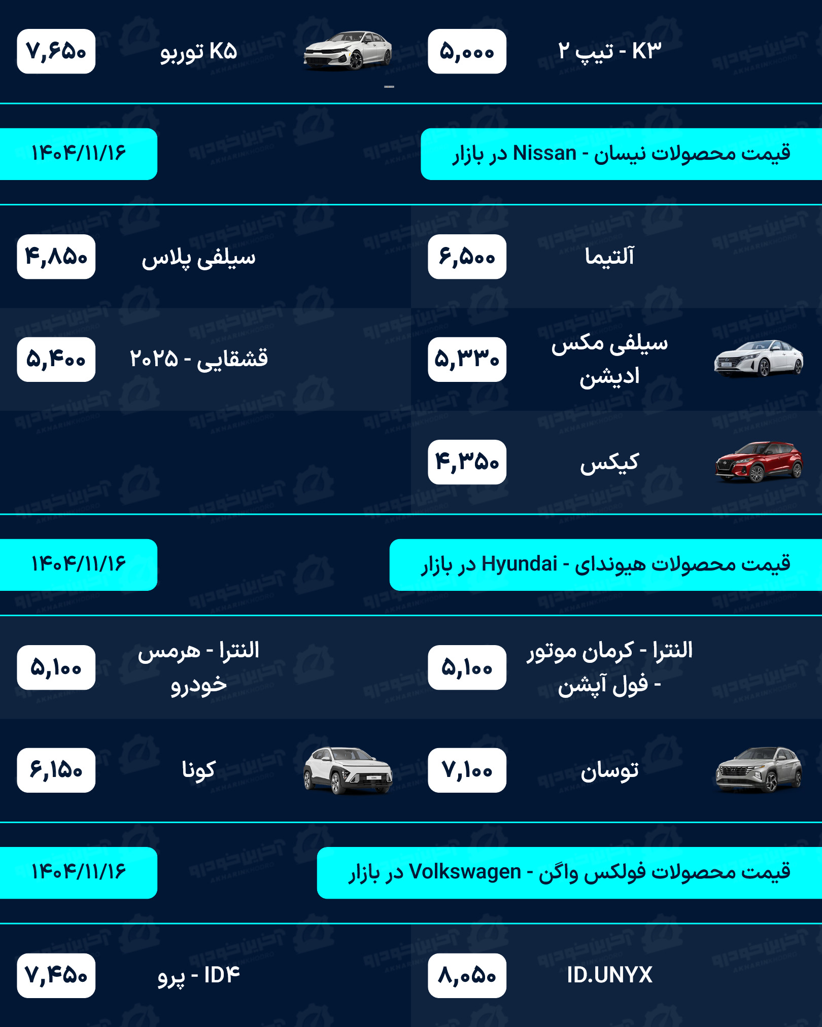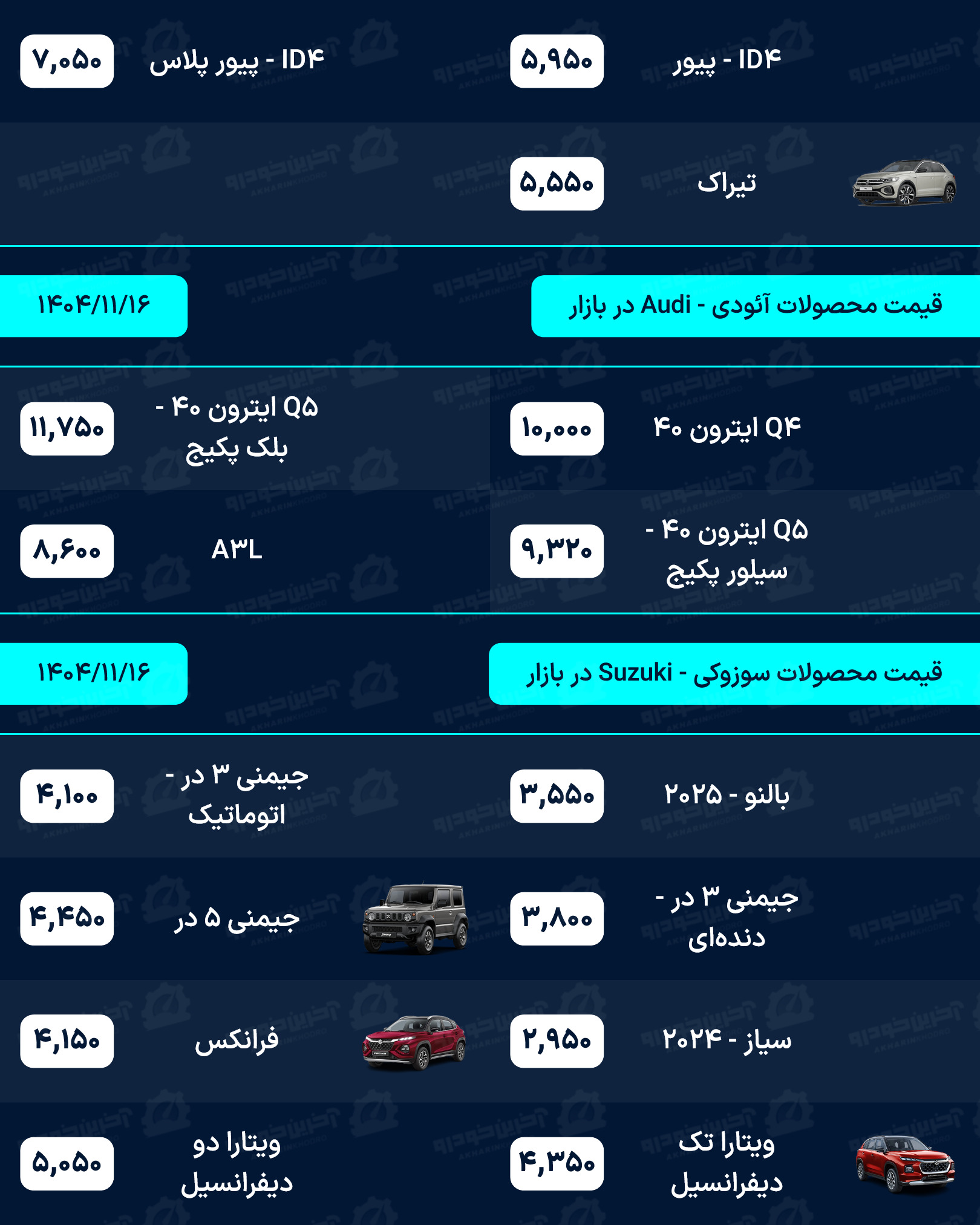 آخرین خودرو/لیستی کامل از قیمت خودروهای صفر کیلومتر داخلی، مونتاژی و وارداتی بازار امروز پنجشنبه مورخ 16 بهمن 1404