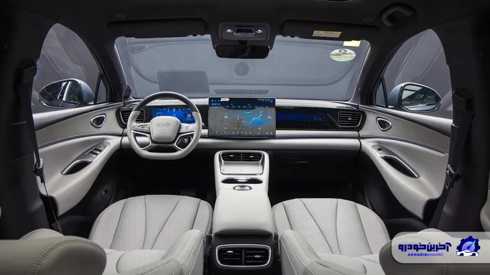 طراحی داخل کابین BYD Sealion 06 ادامهای منطقی از زبان طراحی مدرن و مینیمالی است که بیوایدی در سالهای اخیر بهخوبی آن را توسعه داده است. فضای داخلی این خودرو بیش از هر چیز بر حس تکنولوژی، سادگی و کاربرمحوری تمرکز دارد و تلاش میکند تجربهای آرام و امروزی برای سرنشینان فراهم کند.