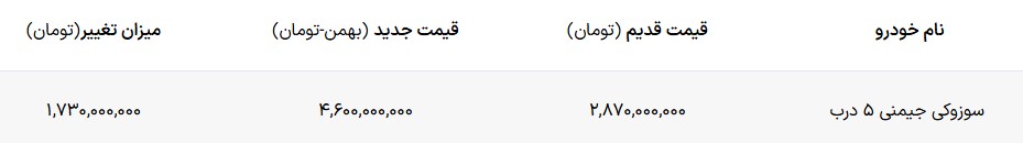 قیمت جدید سوزوکی جیمنی ۵ درب اعلام شد – بهمن ۱۴۰۴