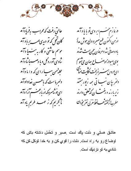 بیتوته/ تشخیص و پذیرفتن خوب و بد از محتوای غزل، بستگی به وضعیت روحی، عاطفی و باور صاحب فال دارد. در هر صورت در هر غزل حافظ بیتی وجود دارد که صاحب فال آن را مناسب آرزو و نیت خود می یابد و همان را به عنوان وصف الحال و جواب حافظ می پذیرد و به آرامش خاطر دست می یابد.