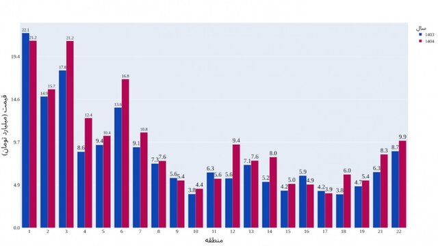 میانگین قیمت آگهی های فروش شهر تهران (به تفکیک مناطق)