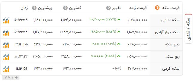 امروز سکه 11 میلیون رو رد کرد و تا لحظه تنظیم این خبر، 11 میلیون و 81 هزار و 300 تومان قیمت داشت و 174 هزار و 700 تومان گران شد.