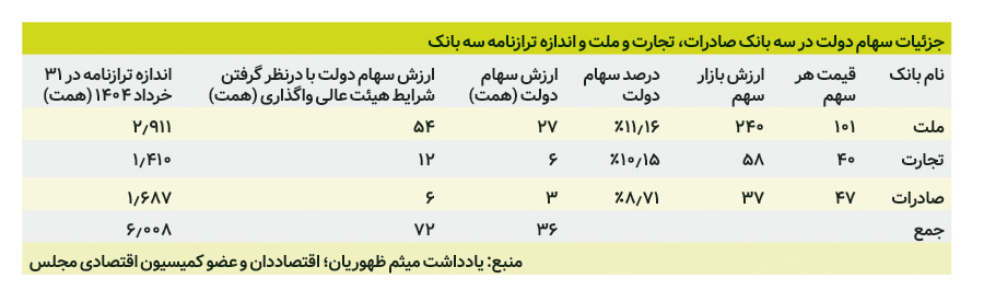 تصمیم تازه هیئت عالی واگذاری برای فروش باقی مانده سهام دولت در سه بانک بزرگ ملت، تجارت و صادرات، موجی از هشدارها را در میان کارشناسان اقتصادی و نمایندگان مجلس برانگیخته است. هدف دولت، اگر چه تکمیل خصوصی‌سازی و تأمین منابع مالی است، اما منتقدان از «بزرگ‌ترین رانت تاریخ خصوصی سازی» سخن می‌گویند؛ رانتی که در ظاهر با شعار بهره‌وری همراه است، اما در عمل می‌تواند کنترل بخش عظیمی از نظام بانکی کشور را با قیمتی ناچیز به دست گروه‌های خاص بسپارد.