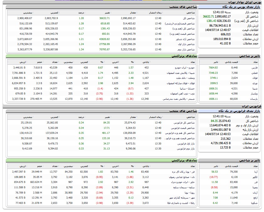 آخرین خبر/ شاخص کل بورس با صعود ۳۶ هزار واحدی در پایان معاملات امروز به ۲ میلیون و ۸۹۰ هزار واحد رسید.شاخص کل هم (وزن): هزار واحد مثبتارزش معاملات: ۱۸۷۱۰۰ میلیارد تومان