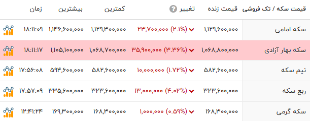 قیمت طلا و انواع سکه را در جدول زیر مشاهده میکنید.