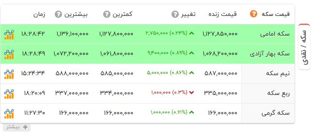 به گزارش آخرین خبر و به نقل از سایت شبکه اطلاع رسانی طلا، سکه و ارز، سکه امامی 112 میلیون و 785 هزار تومان قیمتگذاری شد، و 275 هزار تومان گران شد.