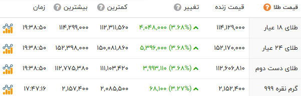 قیمت طلا و انواع سکه را در جدول زیر مشاهده میکنید.