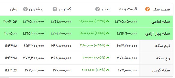 قیمت طلا و انواع سکه را در جدول زیر مشاهده می کنید.